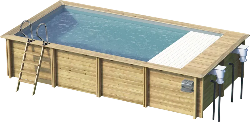 Het stadszwembad is gemaakt van hout van de grove den, klasse 4. Het hout is afkomstig uit Scandinavische gebieden en is milieuverantwoord. . Het houtsoort en de autoclaaf behandeling zijn voorzien van een CTB-B+SP erkenning. Doordat de autoclaaf behandeling na de bewerking toegepast wordt, kan er een garantie op de structuur geboden worden van maar liefst 10 jaar.