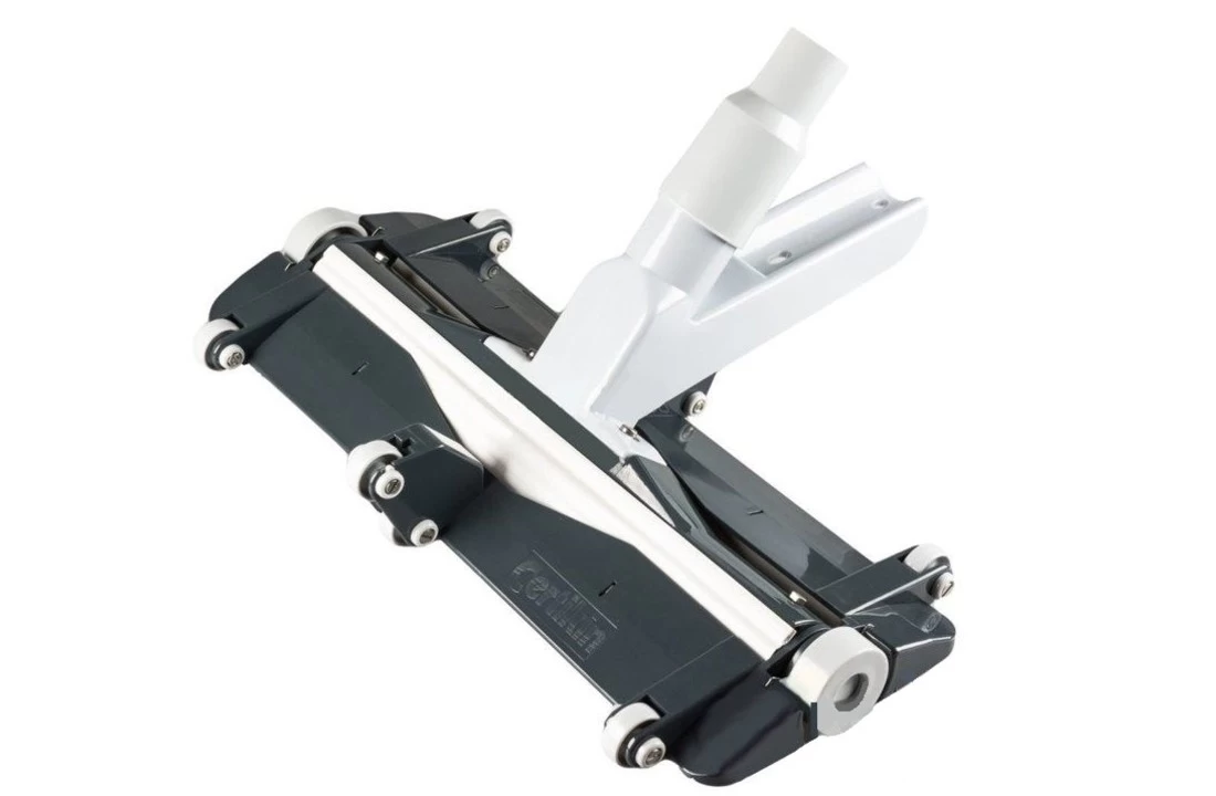 • De borstel is scharnierend ter hoogte van zijn as en zorgt voor een perfecte reiniging van hoeken en snijkanten.