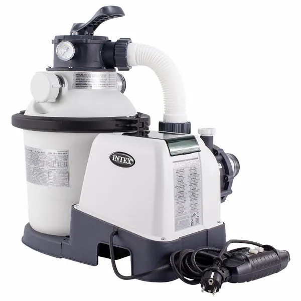 Heb je een Intex zwembad, en wil je deze voorzien van de meest efficiënte filtratietechniek? Dan is, afhankelijk van de grootte en weerstanden van je zwembad, dit de set die je nodig hebt. Deze zandfilterpomp verpompt tot 4.000 liter water per uur. Dit maakt de Intex zandfilterpomp geschikt voor zwembaden met een waterinhoud tot 16.000 liter. Heb je wat meer weerstanden, denk aan een zoutwatersysteem en/of warmtepomp? Houd dan een maximale waterinhoud aan van 12.000 liter.
