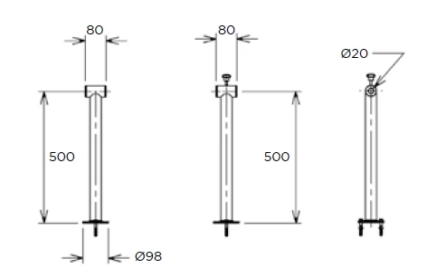 De Flex vaste oprolsystemen hebben 2 rvs AISI-304L steunen met naar keuze flensbevestiging of instorthulzen (met rvs afdekkappen), rem, telescopische geanodiseerde aluminium buis ø 110 mm en op-rolhendel van 140 mm met dekenbevestigingsstrips.