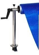 De Flex vaste oprolsystemen hebben 2 rvs AISI-304L steunen met naar keuze flensbevestiging of instorthulzen (met rvs afdekkappen), rem, telescopische geanodiseerde aluminium buis ø 110 mm en op-rolhendel van 140 mm met dekenbevestigingsstrips.