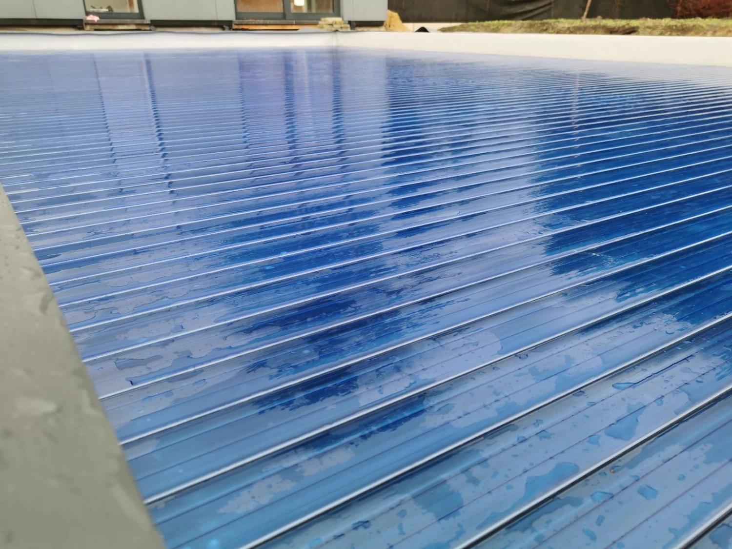 Roldeck Polycarbonaat Solar Eclipse Blauwe lamellen.