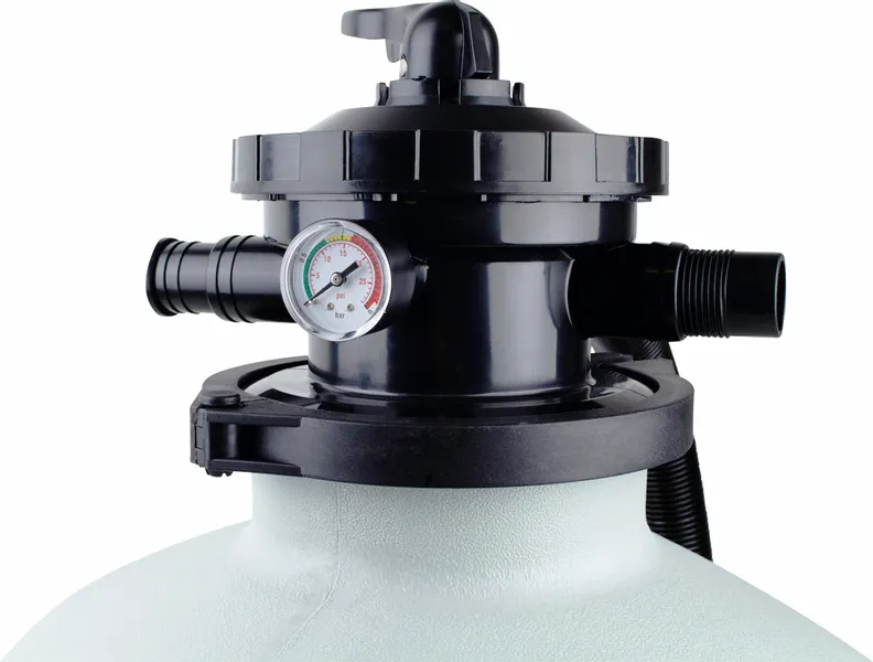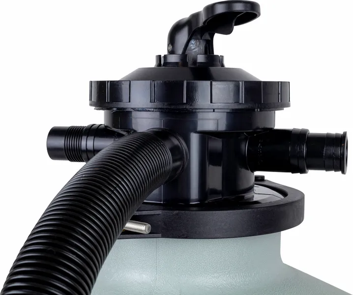 De zandfilterset SP 300 is een zeer gunstig geprijsde budget zandfilterset voor kleine opbouwzwembaden. We adviseren deze filterset voor opbouwzwembaden met een maximale inhoud van 16.000 liter. De filterset is voorzien van een polyethyleen zandfilter in combinatie met een zeer eenvoudige zwembadpomp. Door middel van de 6-weg kraan bedien je gemakkelijk de verschillende standen van het filter.